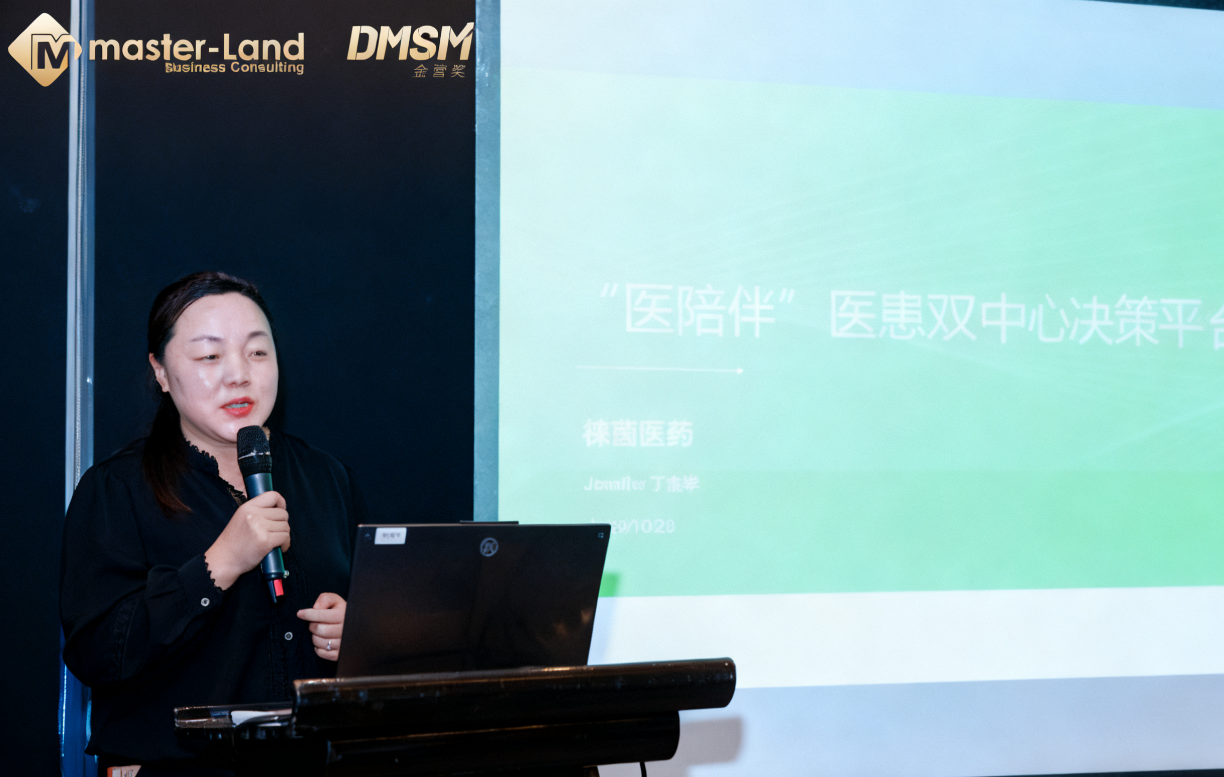 2025 年10月28日,以 “致敬前行者 汇聚榜样力量” 为主题的第四届DMSM金营奖线下路演活动成功举办。北京徕茵医药科技有限公司(以下简称 “徕茵医药”)受邀参加,公司商务总监丁杰华女士于当日13:15开始的路演环节,全面展示了“医陪伴”医患双决策中心平台的创新模式与核心价值,为医疗健康领域的服务与运营创新提供了全新思路。